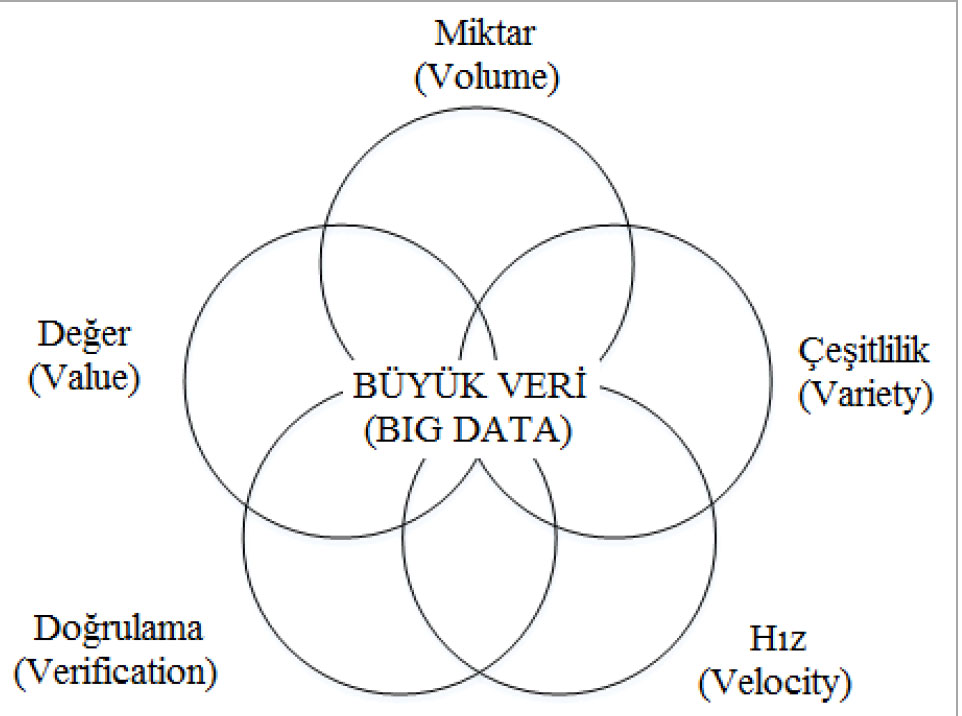 Big Data (Dev Veri) nin oluşumunda 5 bileşen vardır. Bu bileşenler 5V olarak adlandırılmaktadır.