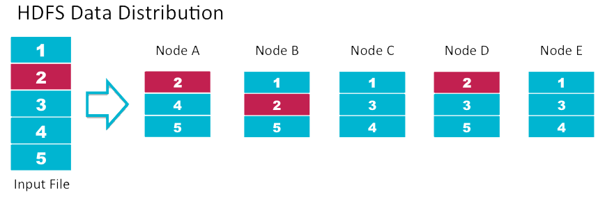 Örneğin yukarıda ki input file içerisnde ki bloklar farklı node lara dağıtılmıştır. Her blok 3 farklı node üzerinde dağıtılmıştır. Olası bir durumuda node lardan biri zarar gördüğünde veya istenemyen başka bir durum gerçekleştiğinde veri kaybının yaşanmasını engellemektir.