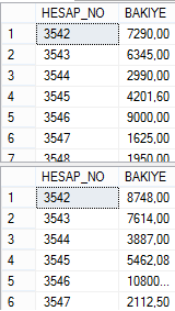 Yukarıda ki CURSOR işleminde tabloda ki kayıtlar satır satır değerlendirilmekte ve şarta göre bulunulan satırlarda değişiklik yapılmaktadır. Aşağıda iki farklı select işlemi ile gerçekleşen değişiklikler ekrana yansımaktadır.